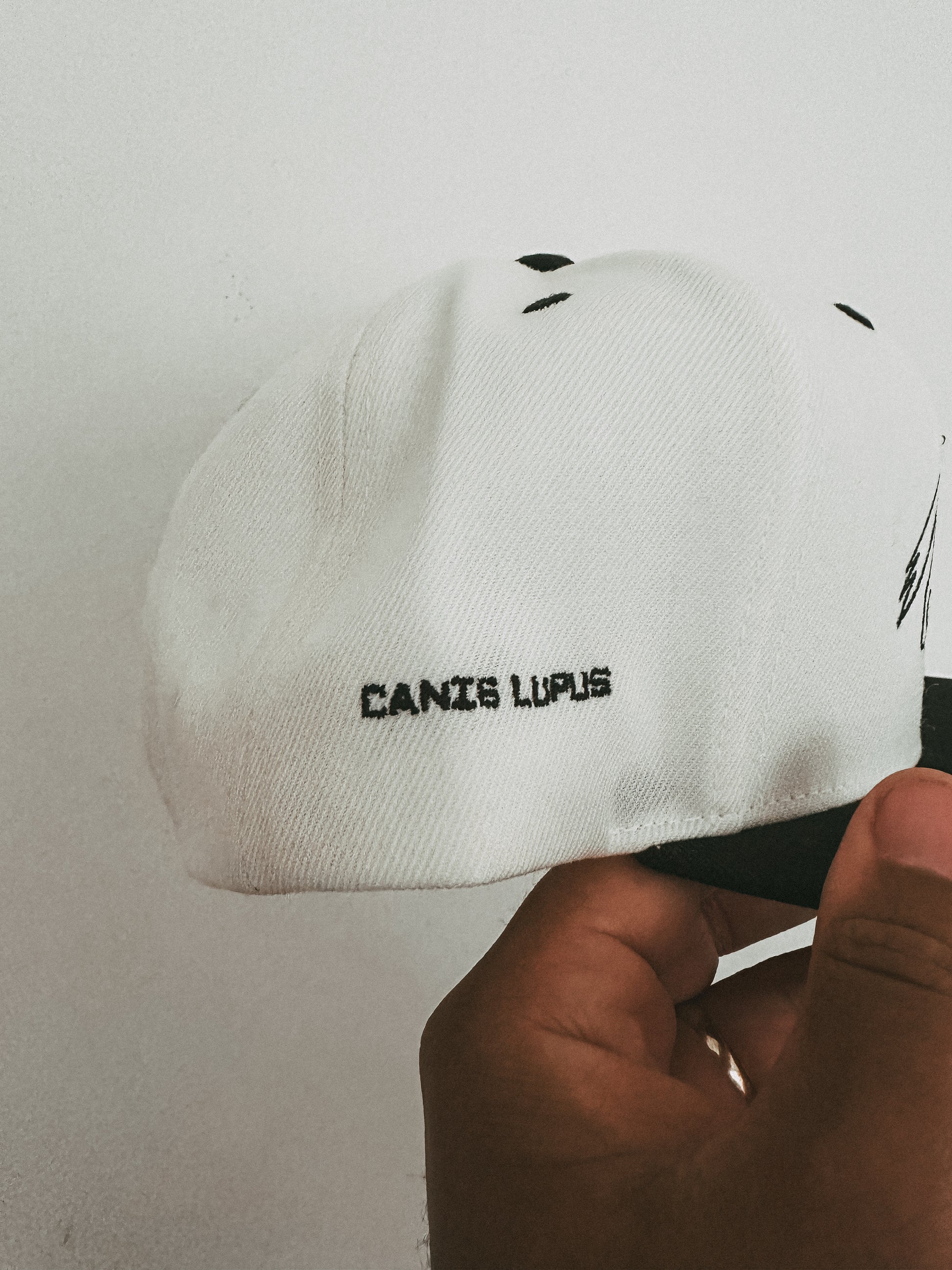 Embrace the howl with this classic fit snapback. Featuring original wolf line art and "canis lupus" text on the side panel.